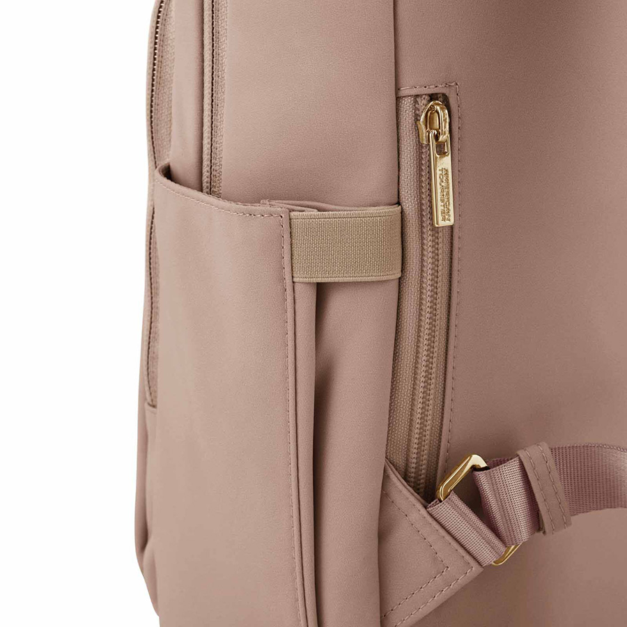 Với Bridget, phong cách hòa quyện cùng sự ngăn nắp, được chế tác riêng cho lối sống năng động của những chuyên gia trẻ hiện đại. Balo sở hữu ngăn chính được tổ chức khoa học và một ngăn đựng tablet. Hai túi khóa kéo riêng biệt phía trước hoàn hảo cho các vật dụng nhỏ thiết yếu, cùng hai túi bên hông dễ dàng đựng bình nước và ô dù. Một ngăn túi nhỏ phía trên cực kỳ tiện lợi giúp bạn nhanh chóng cất hoặc lấy các món đồ thường dùng. Ngoài ra, việc bổ sung thêm túi khóa kéo ẩn giữ các vật dụng quan trọng sát bên mình một cách an toàn. Khi đi du lịch, bạn có thể sử dụng đai gài thông minh để gắn balo vào cần đẩy vali.