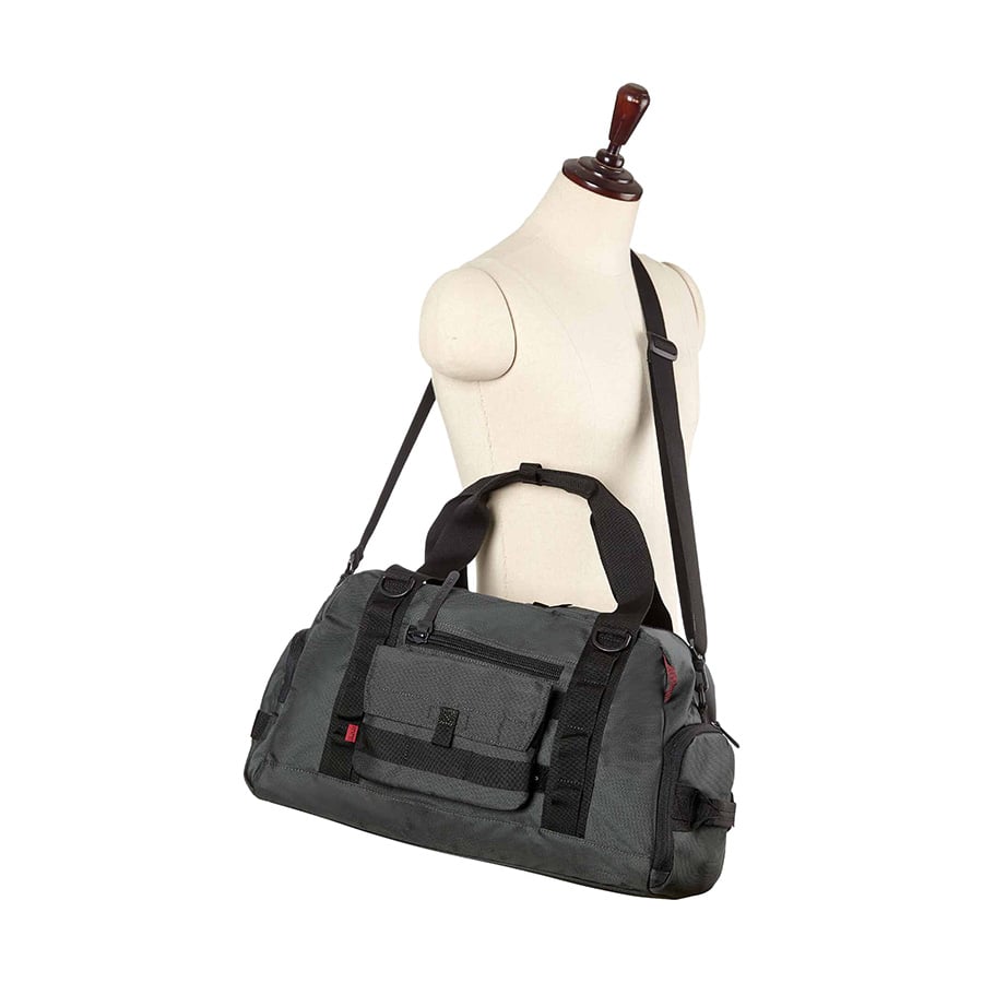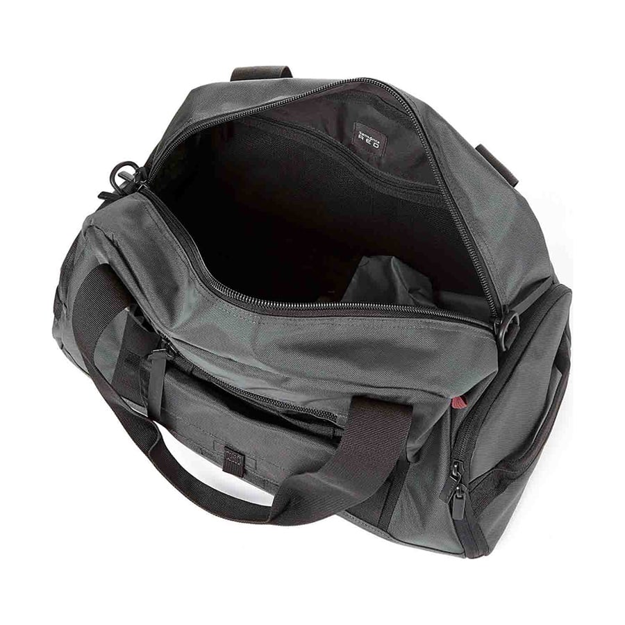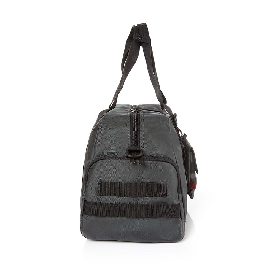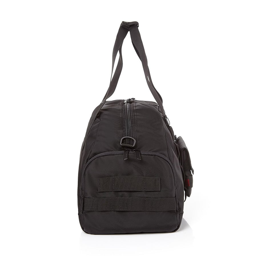 - Ngăn đựng giày bên hông với quai xách bằng vải nylon (có thể nối thông với ngăn chính khi không sử dụng)