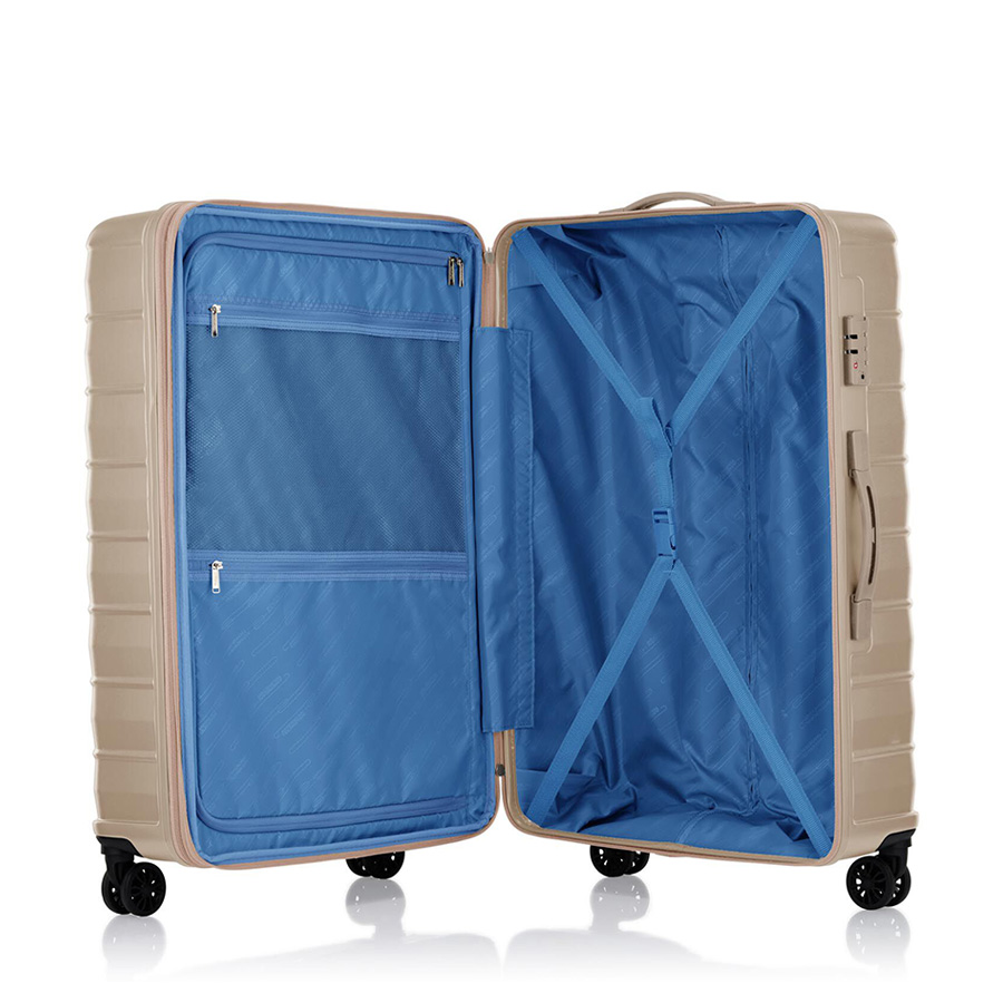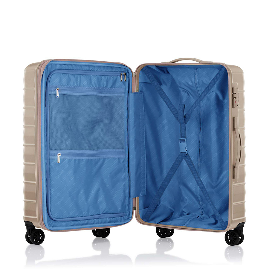 - Khả năng mở rộng tăng sức chứa và hệ thống móc treo tiện dung bên hông vali (size trung và size đại)
